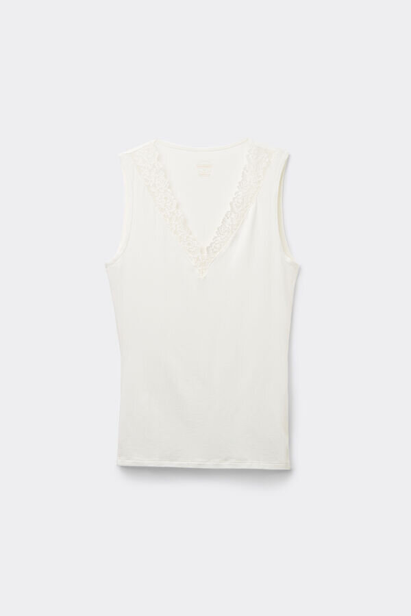 απαλό μπλουζάκι από modal με λαιμόκοψη διακοσμημένη με κομψή δαντέλα με floral μοτίβο.