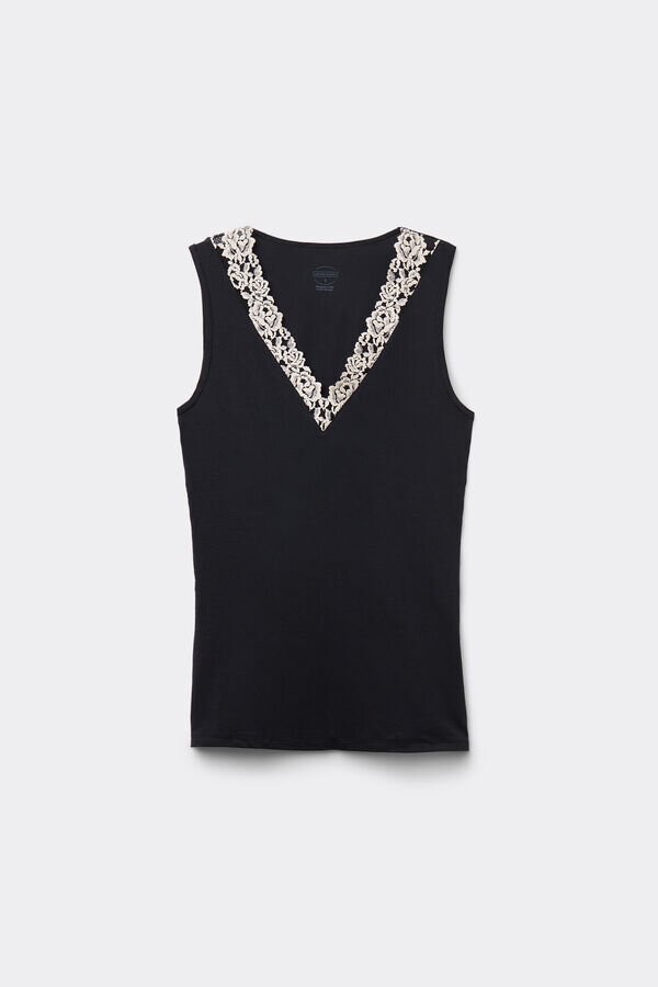 απαλό μπλουζάκι από modal με λαιμόκοψη διακοσμημένη με κομψή δαντέλα με floral μοτίβο.