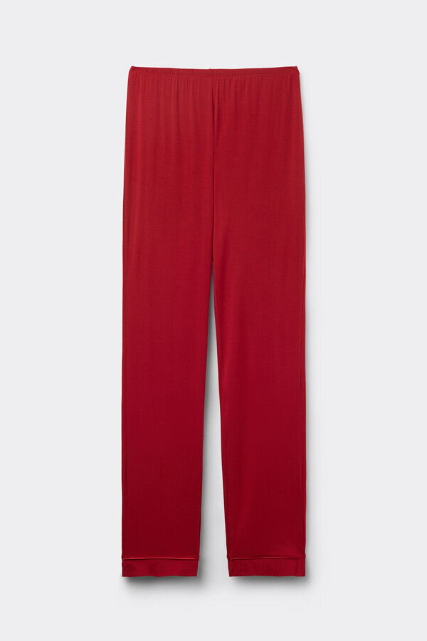 μακρύ παντελόνι από μικρομοντάλ. με λεπτομέρειες από σατέν σε αντίθεση.
