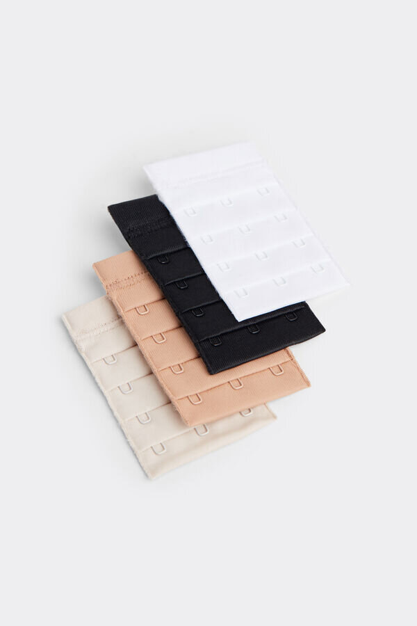 μεγάλα άγκιστρα ρύθμισης που σας επιτρέπουν να επιμηκύνετε το κάτω μέρος του σουτιέν για να καλύψετε τις ανάγκες όσων έχουν μεγαλύτερο περίμετρο στήθους σε σχέση με το μέγεθος του στήθους. μέσα στο κουτί υπάρχουν τέσσερα κομμάτια με τρία άγκιστρα σε τέσσερα χρώματα: λευκό, μαύρο, απαλό μπεζ, ροζ μεταξωτό. το είδος διατίθεται σε ένα μέγεθος.