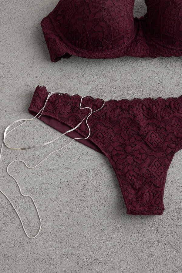 Ανακαλύψτε το δαντελένιο και μικροϊνών Brazilian σλιπ της Intimissimi, με ελαστική δαντέλα με γεωμετρικό σχέδιο, ρομαντικά βολάν και απαλό διπλό στρώμα μικροϊνών στο πίσω μέρος.