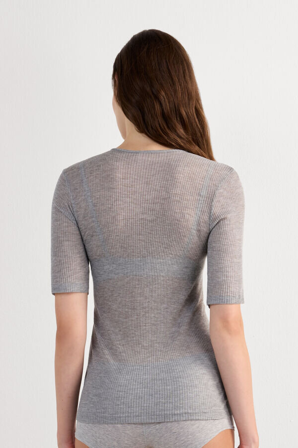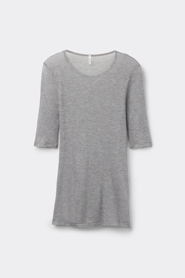 σωληνωτό μπλουζάκι από μαλακό πλεκτό μοντάλ και κασμίρ. Ελαφρύ και στενό, μπορεί να φορεθεί μόνο του ή κάτω από ένα σακάκι χάρη στην αισθησιακή διαφάνεια και την άνετη, ριχτή εφαρμογή του. Για όσους κρυώνουν εύκολα, μπορεί να είναι ένα άνετο μπλουζάκι για να φορεθεί κάτω από τα ρούχα.