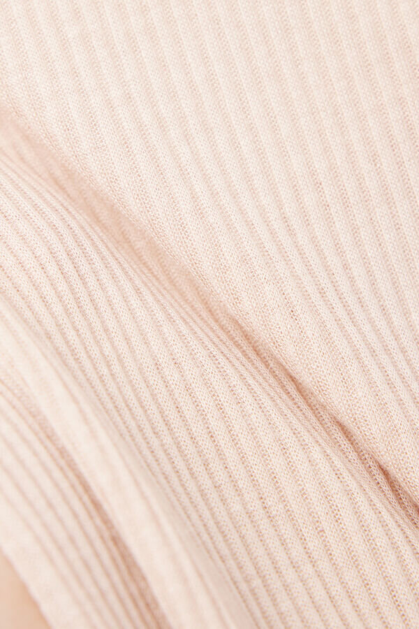 μπλούζα με σωληνοειδή κατασκευή από μαλακό μείγμα modal και κασμίρ με ραβδώσεις. Ελαφριά και στενή εφαρμογή, μπορεί να φορεθεί ως εσώρουχο χάρη στο εφέ δεύτερης επιδερμίδας ή ως μπλούζα χάρη στην αισθησιακή διαφάνεια και την ρευστή και πλούσια εφαρμογή της. Ιδανική για ένα casual στυλ με μια chic πινελιά.
