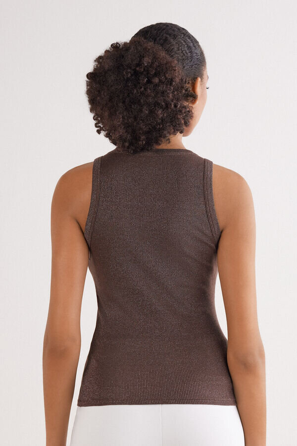 βαμβακερό αμάνικο μπλουζάκι με ραβδώσεις και λαιμόκοψη.