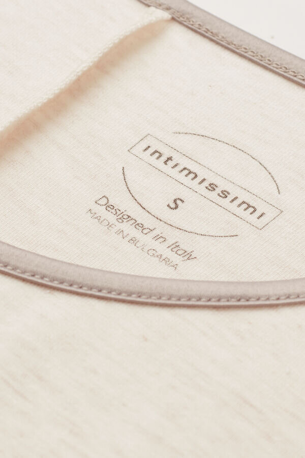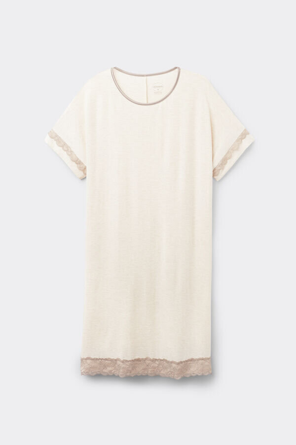 νυχτικό με στρογγυλή λαιμόκοψη και κοντό μανίκι από μαλακό, ελαφρύ ελαστικό τζέρσεϊ μοντάλ. το ρούχο είναι διακοσμημένο με δαντέλα στα μανίκια και στο τελείωμα. κανονική εφαρμογή.