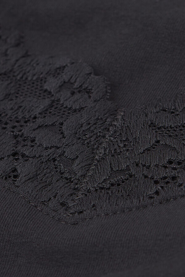 μπλούζα με V λαιμόκοψη από modal και διακοσμημένη με δαντελένιο βολάν. ανάλογα με το χρώμα που θα επιλέξετε, η δαντέλα μπορεί να είναι σε αντίθεση ή σε τόνους του ίδιου χρώματος. λεπτές τιράντες με επένδυση από micromodal.